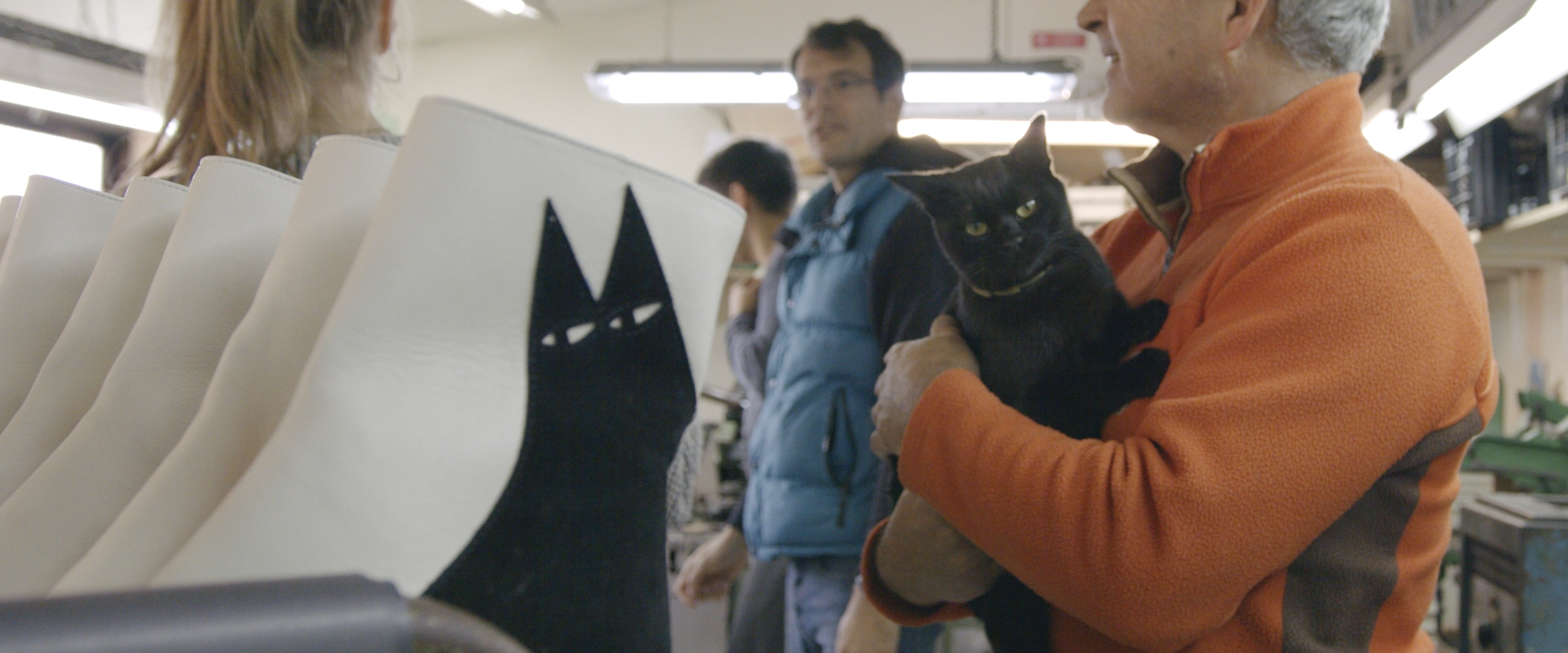 They even have a little black cat that sleeps amongst the leathers - a match made in heaven. Their incredible care and craftsmanship can be seen in our making-of video.