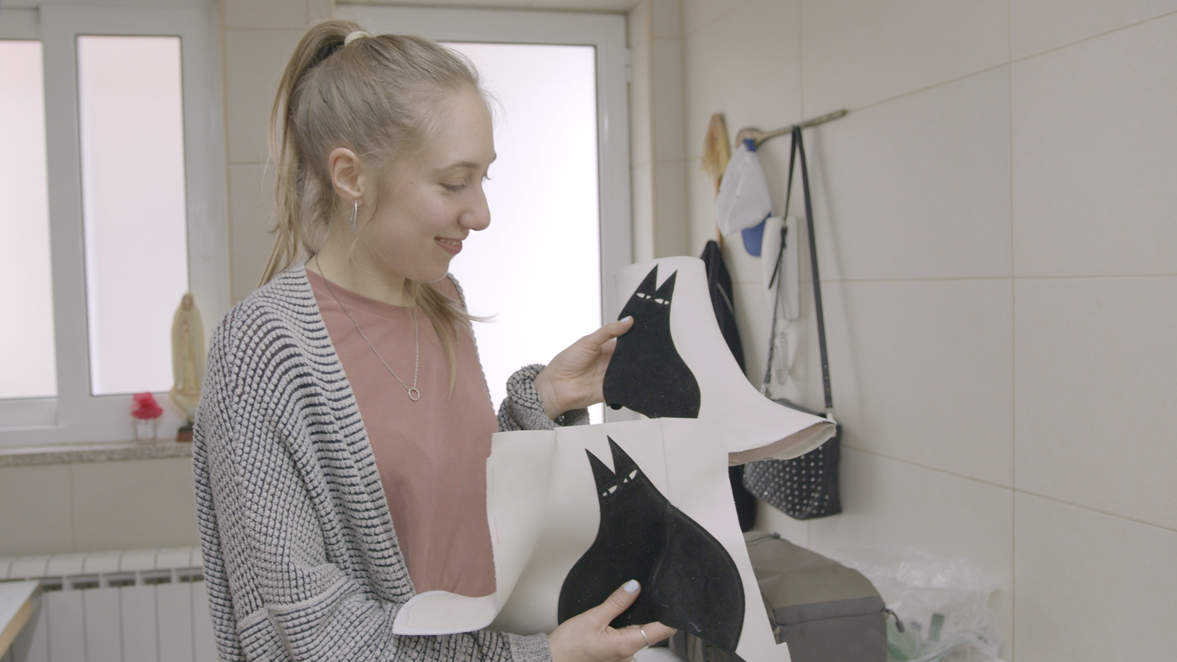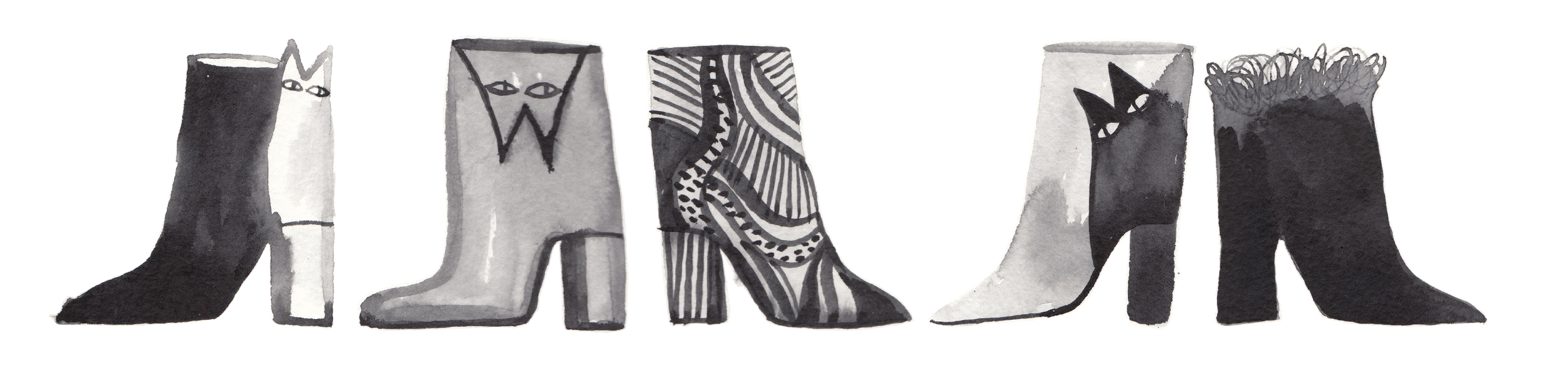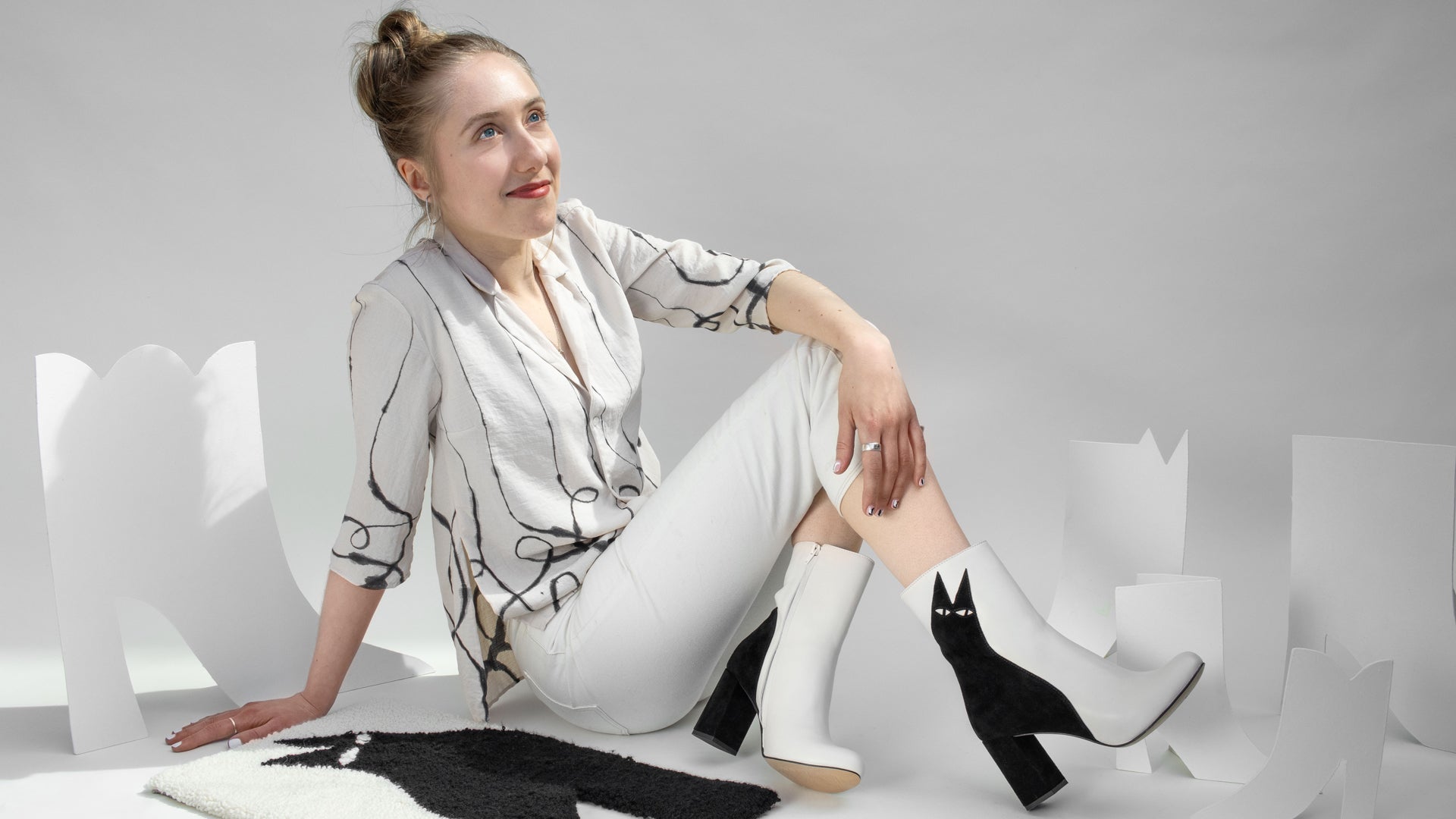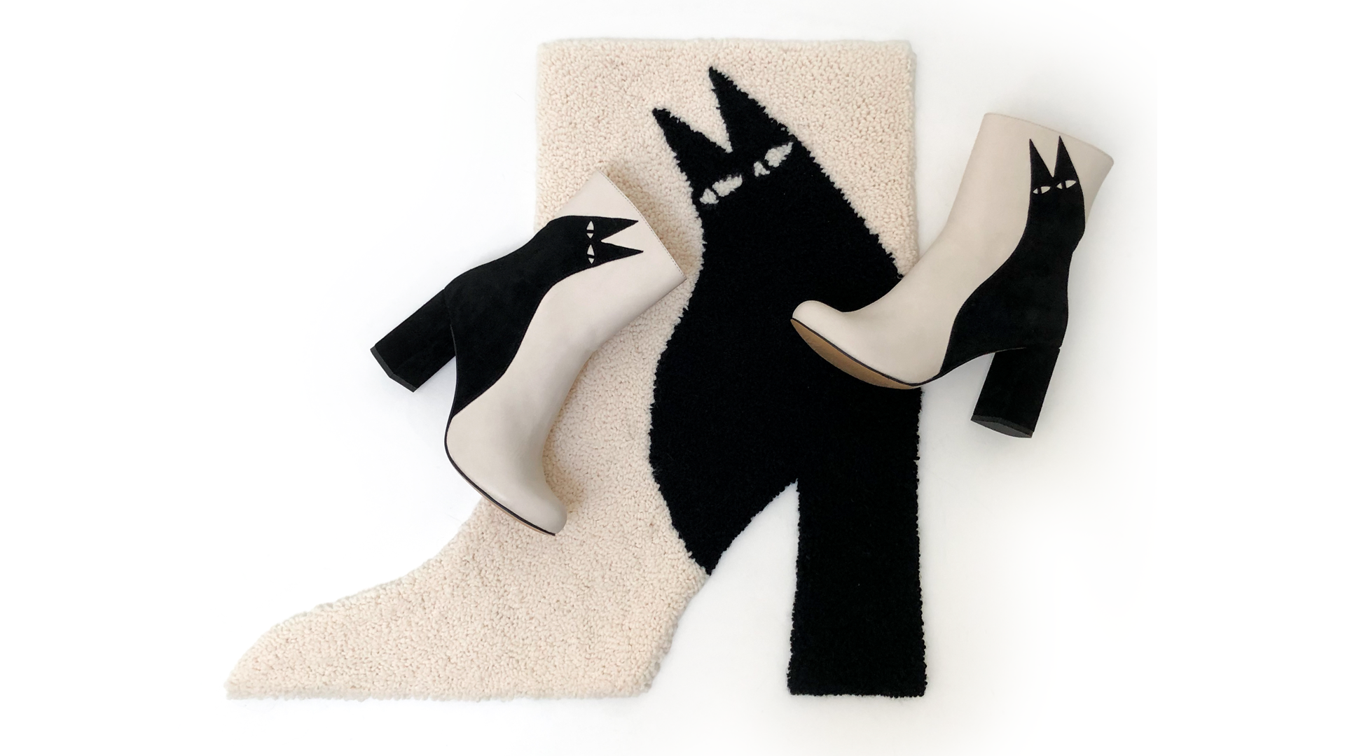 This passion for crafting extends to just about any medium I can get my hands on. I started sewing my own clothes as a teenager and almost studied fashion instead of animation.During the first lockdown I took an online boot-making course with I Can Make Shoes. Years of sewing and illustration merged perfectly in this new medium. I’ve always loved drawing the fluid, liquid, shapes of my two cats, Etta and Ziggy, and so the cat boots were born!